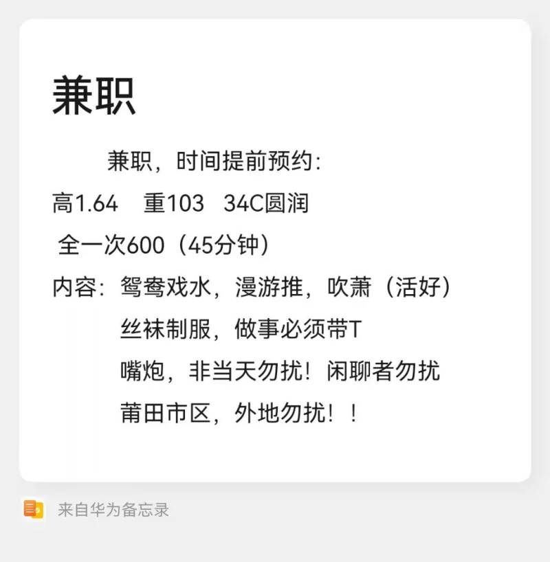 信息分类:楼凤兼职 地区:福建省-莆田 信息来源:自己开发 年龄:26 颜值身材:7分 服务项目:带图片 价格:600 环境设备:自己住所 详细地址:本段信息已隐藏,请先登陆。点击登陆 , 或者 点击注册 联系方式(QQ号):本段信息已隐藏,请先登陆。点击登陆 , 或者 点击注册 详细介绍: 楼凤兼职