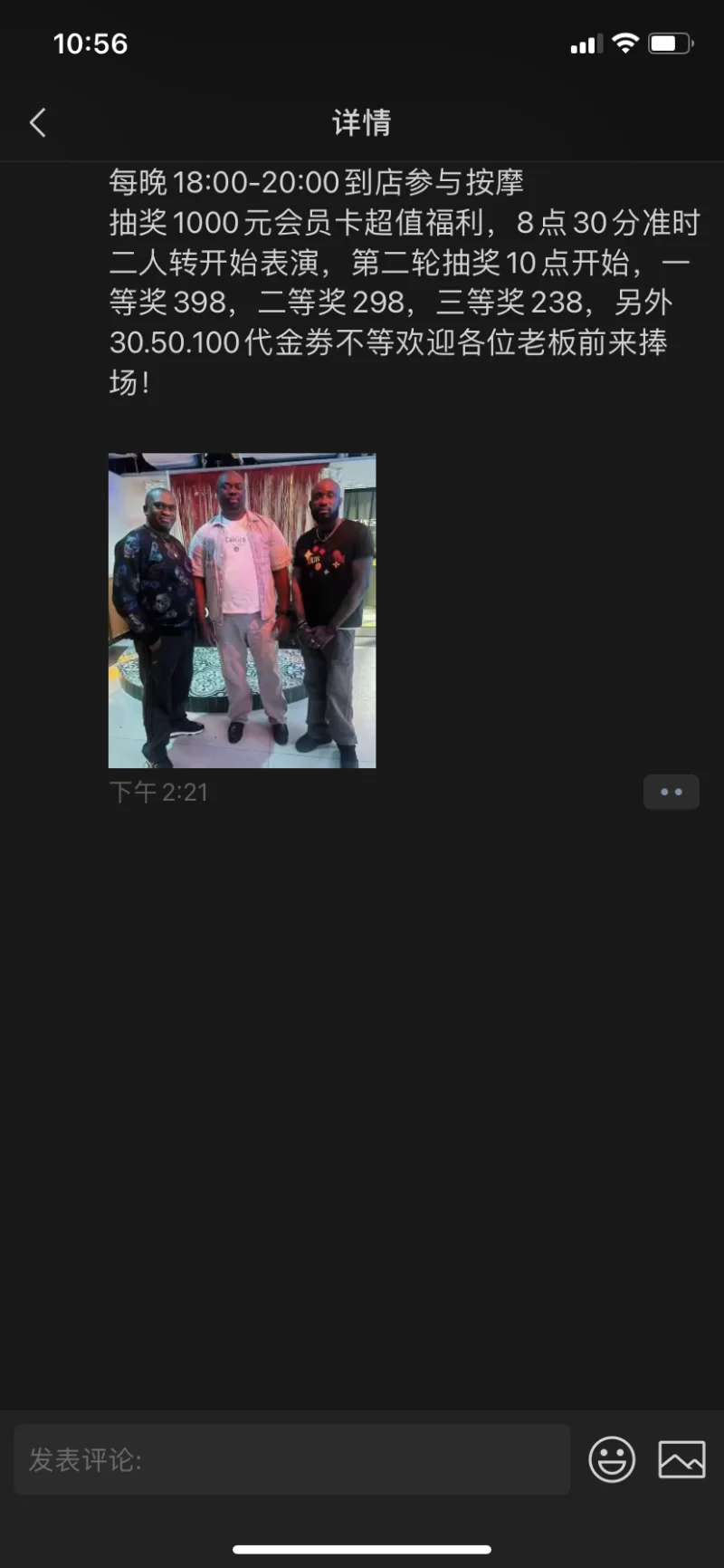 一楼洗浴。洗完上二楼就能看见技师。最近在搞活动晚上8点半有二人转表演。10点还有抽奖活动